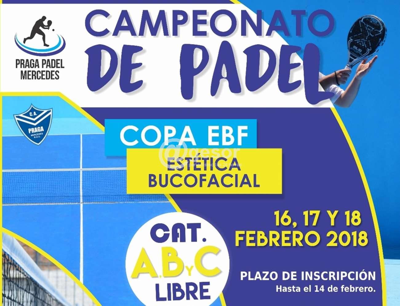 En instalaciones del club Praga estará disputándose campeonato de padel en el que estará en juego la Copa EBF, durante viernes 16, sábado 17 y domingo 18, pudiéndose registrar inscripciones hasta este miércoles 14 a través de los celulares 099 240 750 y 099 651 278.