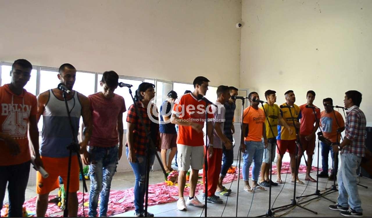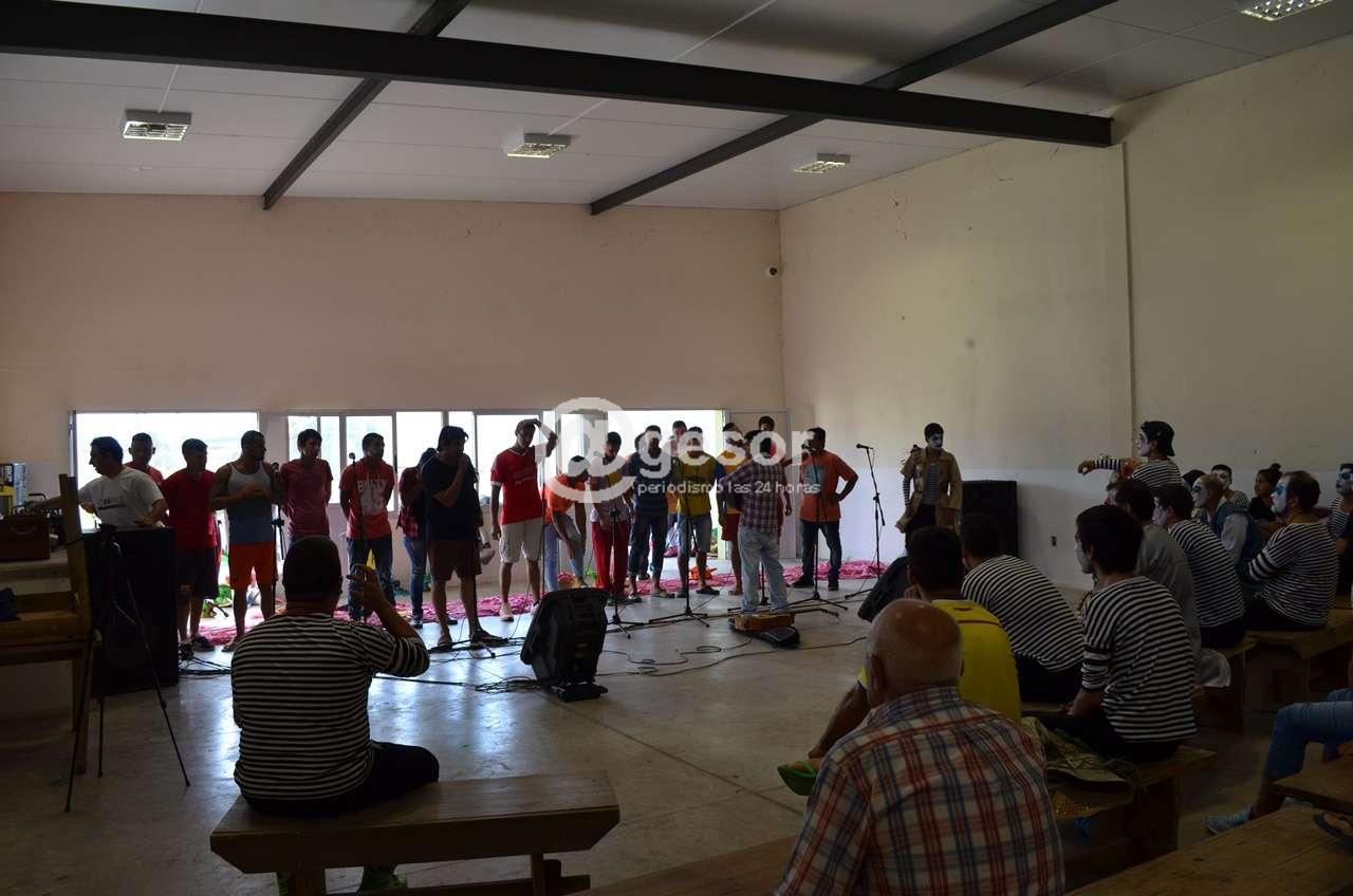 En el salón de la  Unidad N° 24 de  Pense  la murga  conformada por los  reclusos  cantó para  recibir  a Sale con Fritas,  en esta  jornada  de confraternidad  vivida en la cárcel de Mercedes. Desde  hace  un  tiempo los  internos desarrollan  esta actividad artística  buscando “sacar la cabeza”  como ellos  mismos lo definen. El año pasado intentaron  sin  éxito  participar  del Carnaval de  Mercedes, pero  las  opiniones  contrarias surgidas en diferentes medios  hizo  abortar la  iniciativa. Pero  igualmente dentro de la Cárcel  continuaron reuniéndose  y conformando el coro  y los temas  del  repertorio.