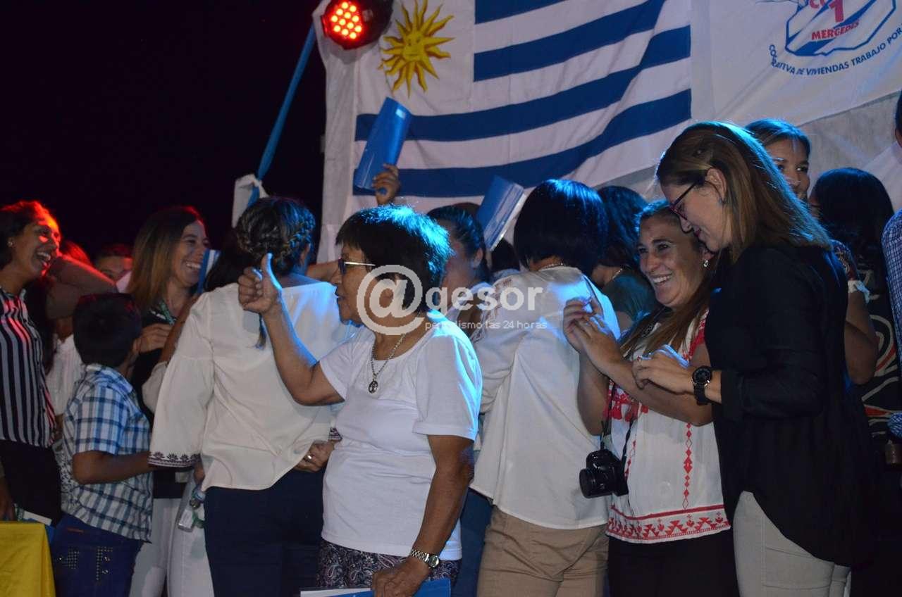 Se concretó  así  una  larga  aspiración  de  estas  familias  que  esperaron por  el techo  propio.  El  acto se realizó en el  patio  interior del  grupo de  viviendas ubicado  en  calle Oribe  al sur,  donde  entre  alegría y  lágrimas de  emoción cada  una  de las llaves  fueron a   manos  de los integrantes de estas  familias.
