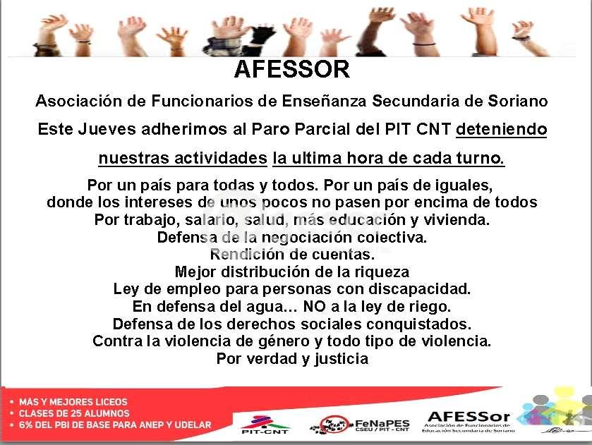 Este Jueves adherimos al Paro Parcial del PIT CNT deteniendo nuestras actividades la ultima hora de cada turno.