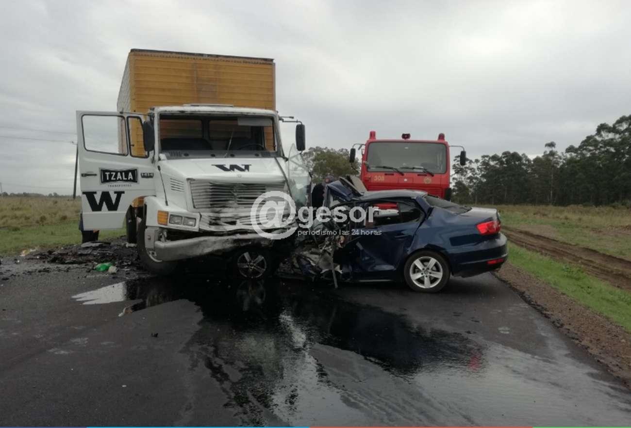 Siniestro fatal de tránsito ocurrió en la mañana de este martes en Ruta 12, a poco más de 1 km de la localidad de pueblo Jackson, en circunstancias en que entraron en colisión un automóvil Volkswagen Vento matriculado en Argentina LAG 307 en dirección hacia Florencio Sánchez y un camión Mercedes Benz que lo hacía en dirección contraria.