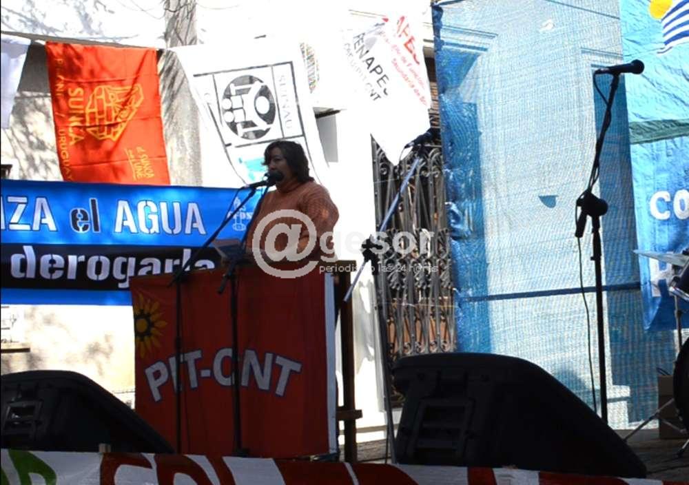 En la oportunidad, al hacer uso de la palabra, Judith Riva integrante del grupo que está recolectando firmas para derogar la ley de riego comenzó señalando "invitamos a todos y todas a unirnos en lucha por la defensa del agua.