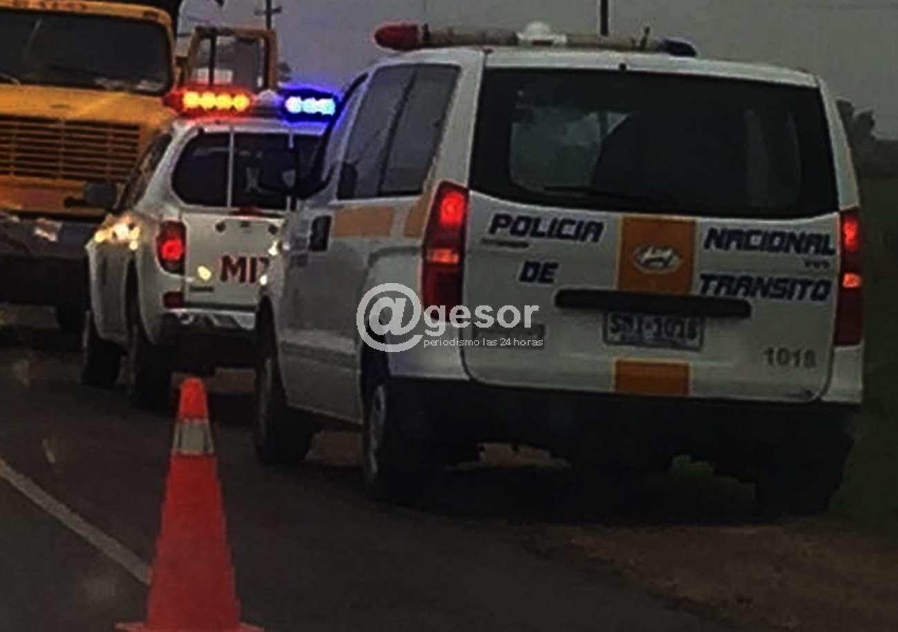 En circunstancias que el conductor de moto Vince 125 cc. KDJ 345, Milton Eduardo Aquino Moreira de 65 años, circulaba por ruta mencionada de Oeste a Este; al llegar al lugar, se sale de carpeta asfáltica impactando rueda delantera contra mojón allí existente. Asistido en el lugar por personal médico se constató el fallecimiento.