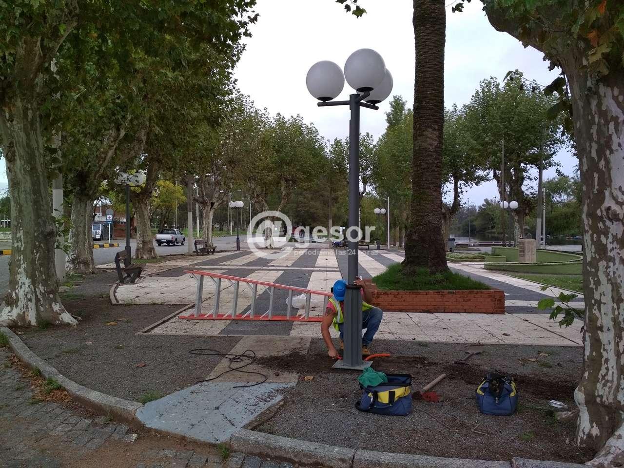 En este lugar, enclavado en la zona del puerto mercedario, se han efectuado tareas de hidrolavado en muros y piso, pintura del muro y recambio total de la iluminación de la plaza. En este caso se sustituyeron los soportes y las luminarias tipo globo que portaban lámparas de sodio, colocando seis nuevos artefactos que cuentan con tres globos cada uno, provistos de lámparas LED de 40 watts.