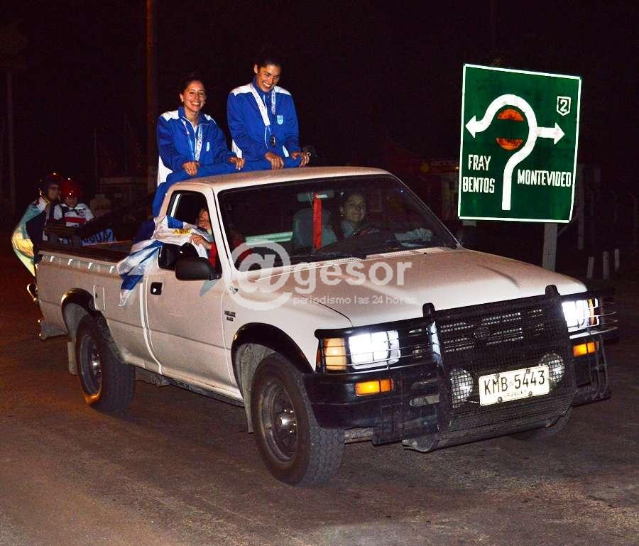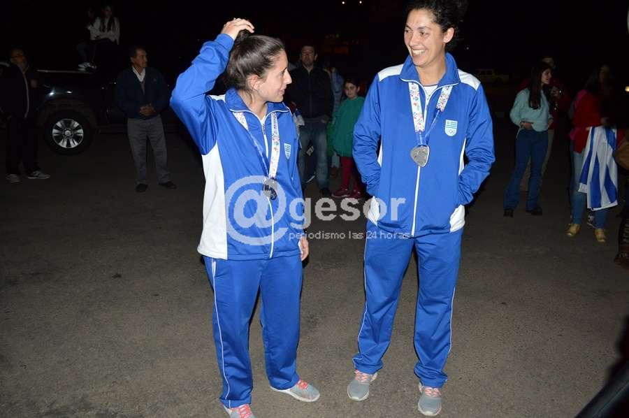 Las jóvenes pelotaris mercedarias, Mariángel Maneiro y Sofía Vicente arribaron en la noche de este sábado a Mercedes, donde las aguardaba un sorpresivo recibimiento.
