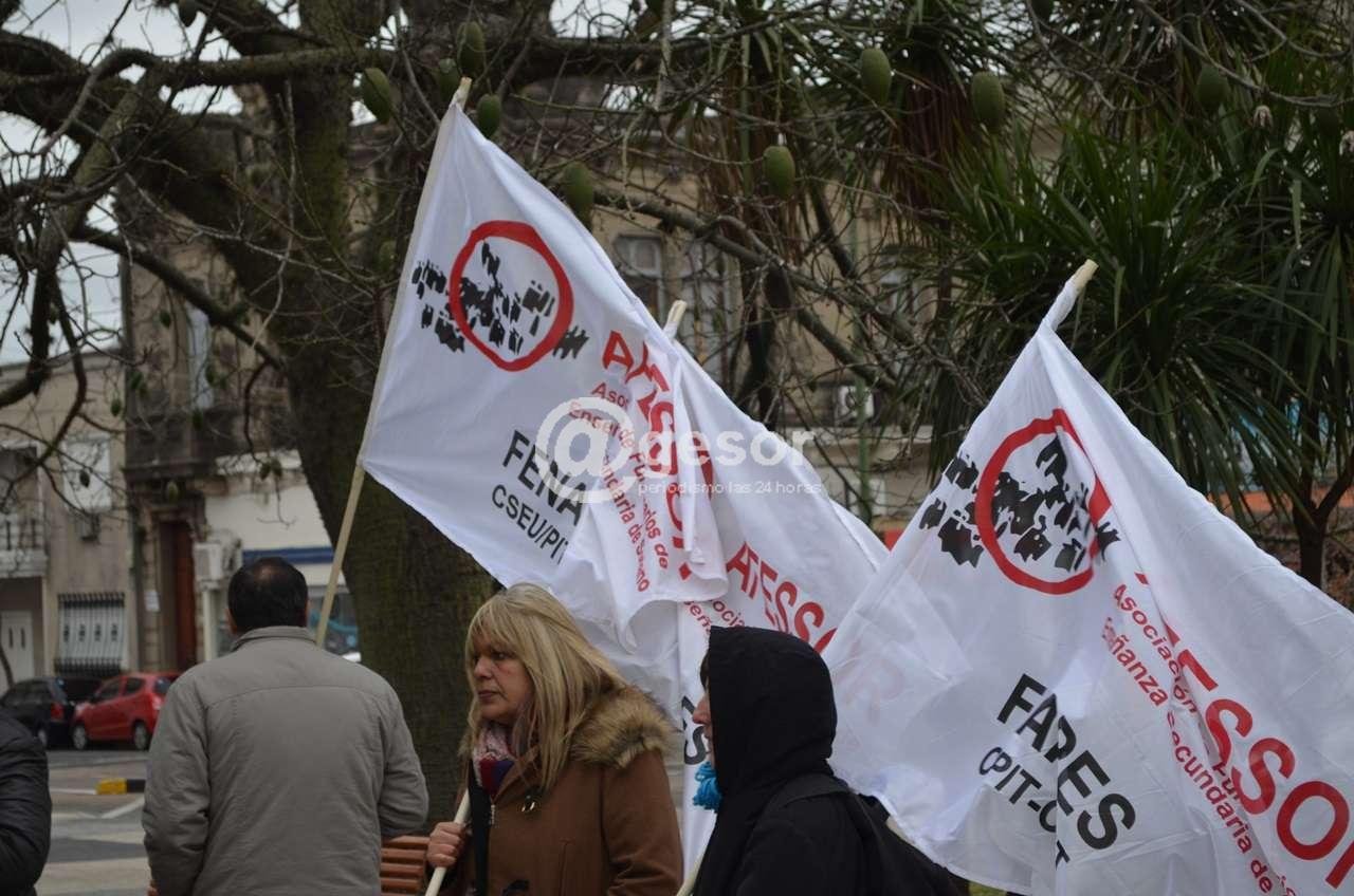 Tal como estaba previsto el gremio docente y la Asociación de Funcionarios de Enseñanza Secundaria de Soriano (AFESSOR) se concentraron frente al Liceo N° 2 de Mercedes y marcharon hasta Plaza Independencia donde se leyó una proclama. La misma expresa: