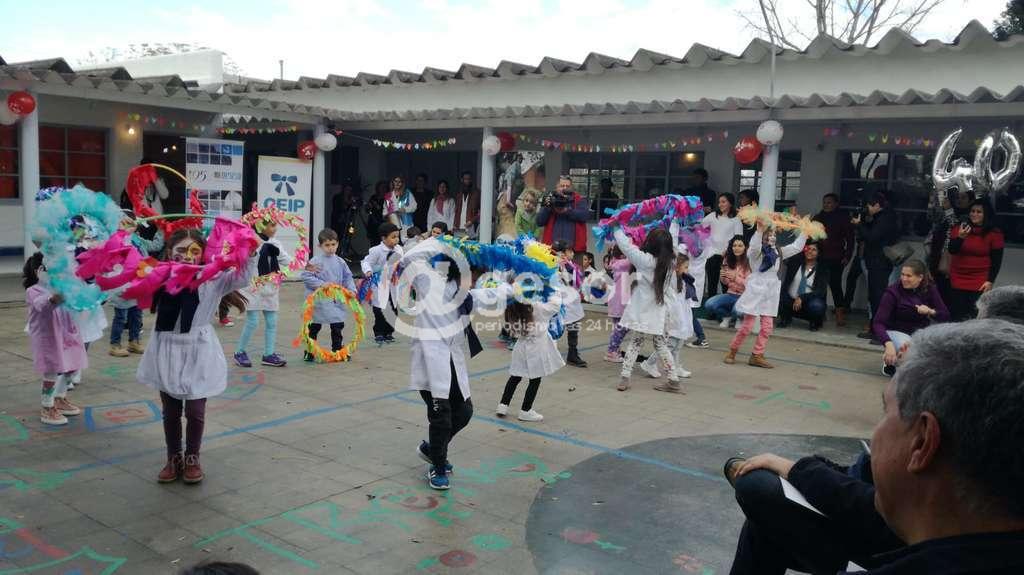 Con la presencia de autoridades departamentales y nacionales se realizó este acto en el patio de la Escuela N° 117 de Palmar, ubicada en la ruta 55 a la altura del kilómetro 16 , que el pasado 19 de junio cumplió sus 40 años. La inspectora Departamental de Primaria Raquel Casartelli, en diálogo con @gesor recordó que la Escuela se encuentra en un predio de UTE y que el ente se hizo cargo de las tareas de refacción consistente en arreglos edilicios en los salones, la sala de vídeo, la cocina y la dirección, entre otros sectores, más las refacciones vinculadas a pintura, electricidad y aberturas, asumidos por UTE con un costo estimado de $ 2.500.000.