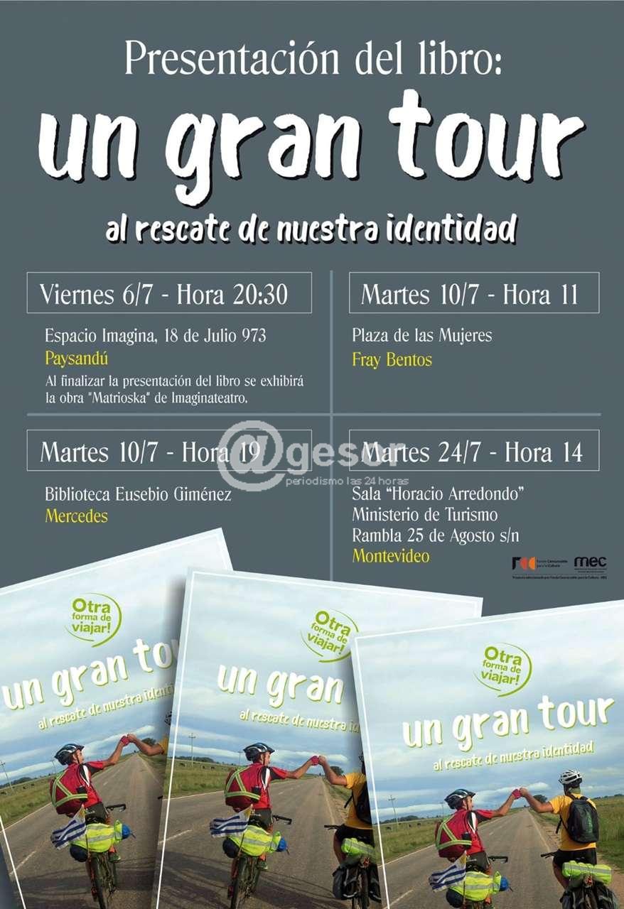 “Un Gran Tour al rescate de nuestra identidad”, es el título de la obra que fue seleccionada por el Fondo Regional de Cultura (MEC) en 2017. El libro, con prólogo de Néstor Ganduglia, contiene unas 300 páginas e incluye el relato del Diario de Viaje, con información (testimonios, tips y destacados) de cada lugar visitado.