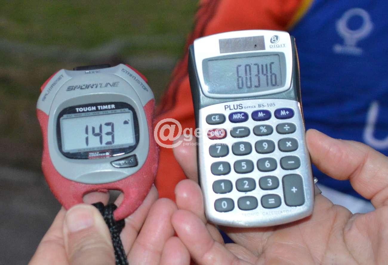 Precisamente quien llegó a la CAU cronometró 11 horas 59 minutos y 13 segundos de tiempo, para 143 vueltas y 60,346 km de recorrido.