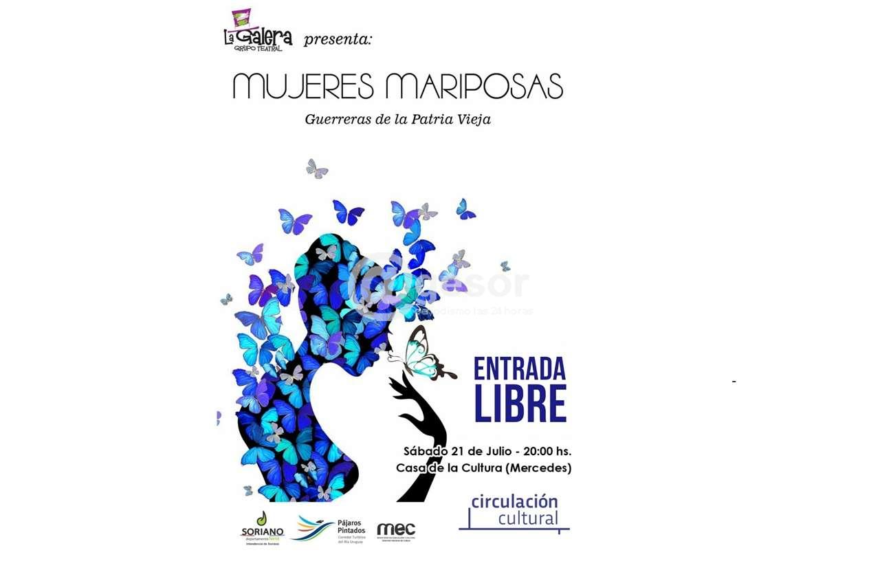 Grupo Teatral LA GALERA y la Dirección de Cultura de Soriano, presentan MUJERES MARIPOSAS, sábado 21 a las 20 horas en Casa de la Cultura.