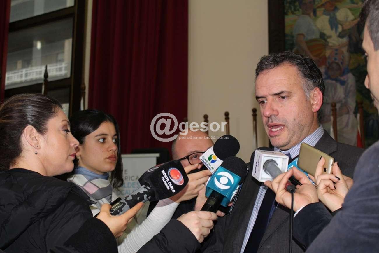 La conferencia de prensa se desarrolló en la sede del Congreso de Intendentes en Montevideo.