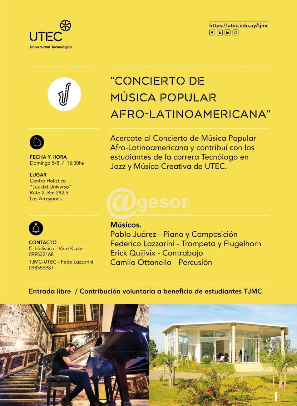 “Música Popular Afro-latinoamericana” será el título de un par de charlas-taller que se dictarán en Mercedes el sábado y domingo próximo. La actividad en promovida por la UTEC, estando a cargo del compositor y docente Pablo Juárez.