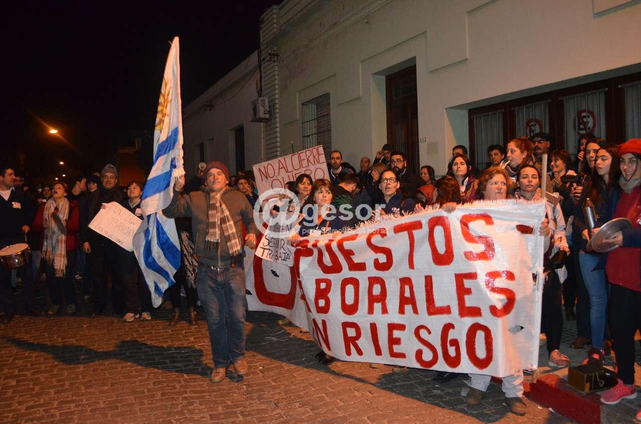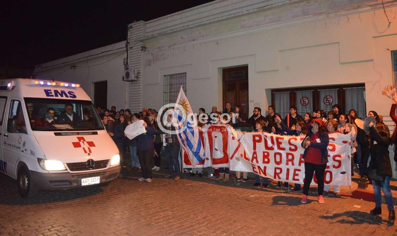 “Tajantemente, en Cardona no va a haber cierre de servicios” así lo afirmó el dirigente de la Federación Uruguaya de la Salud (FUS) Elolo Mendoza al salir de la reunión con directivos de CAMS. En el acceso al Policlínico de CAMS de Mercedes y luego de más de dos horas de reunión, dirigentes de la FUS y del Sindicato local improvisaron un acto frente a afiliados y usuarios de CAMS que estuvieron haciendo el aguante. Como estaba previsto sobre las 19,30 horas se inició la reunión entre la delegación sindical y la directiva de la mutualista local, y desde esa hora más de dos doscientas personas se agruparon frente al Policlínico. Redoblante, bombo, tapas de ollas, campanillas y cornetas sirvieron para exteriorizar la protesta con carteles que expresaban “No a la reestructura de CAMS Cardona”, o “Queremos seguir trabajando”. Mayoritariamente se trataba de funcionarios y usuarios de Cardona y Dolores, y paulatinamente comenzaron a sumarse algunos ediles de la Junta Departamental. Llamó la atención que ningún edil del Frente Amplio se hizo presente durante la manifestación, y tampoco estuvieron presentes dirigentes del PIT CNT local o de otros sindicatos.