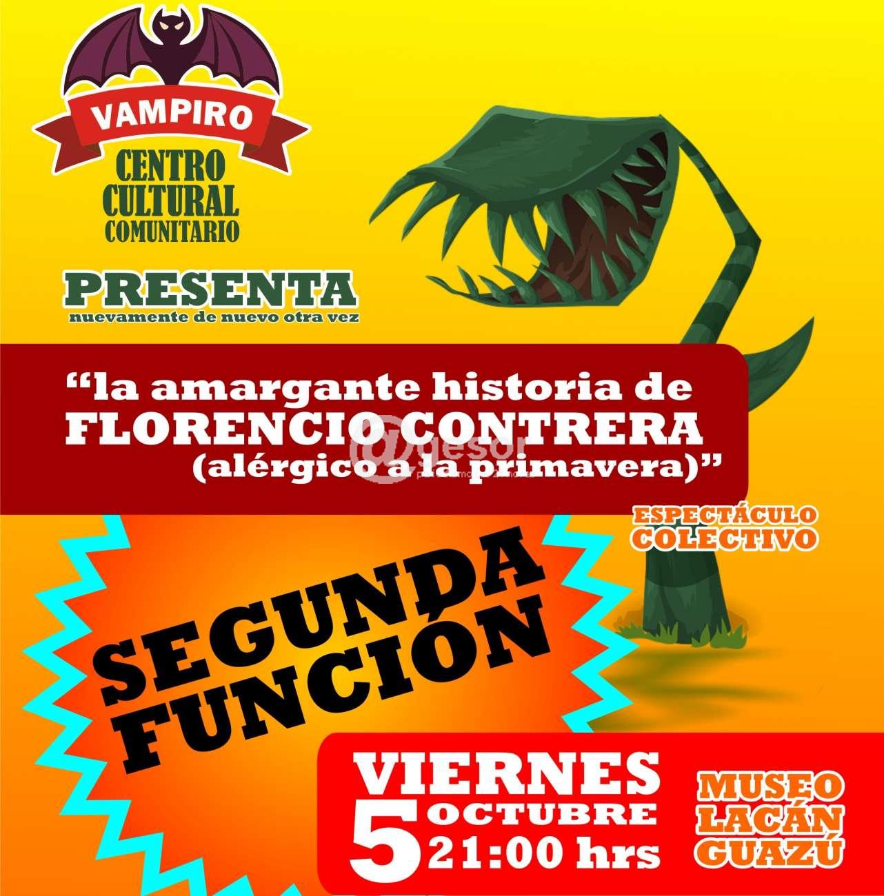 La Agenda Cultural comienza este viernes 5 a las 21.00 horas en Museo Lacán Guazú de Dolores, con la segunda función del espectáculo colectivo “La amargante historia de Florencio Contrera (alérgico a la primavera)”, con más de 30 artistas en escena, espectáculo que agotó entradas en su primera función.