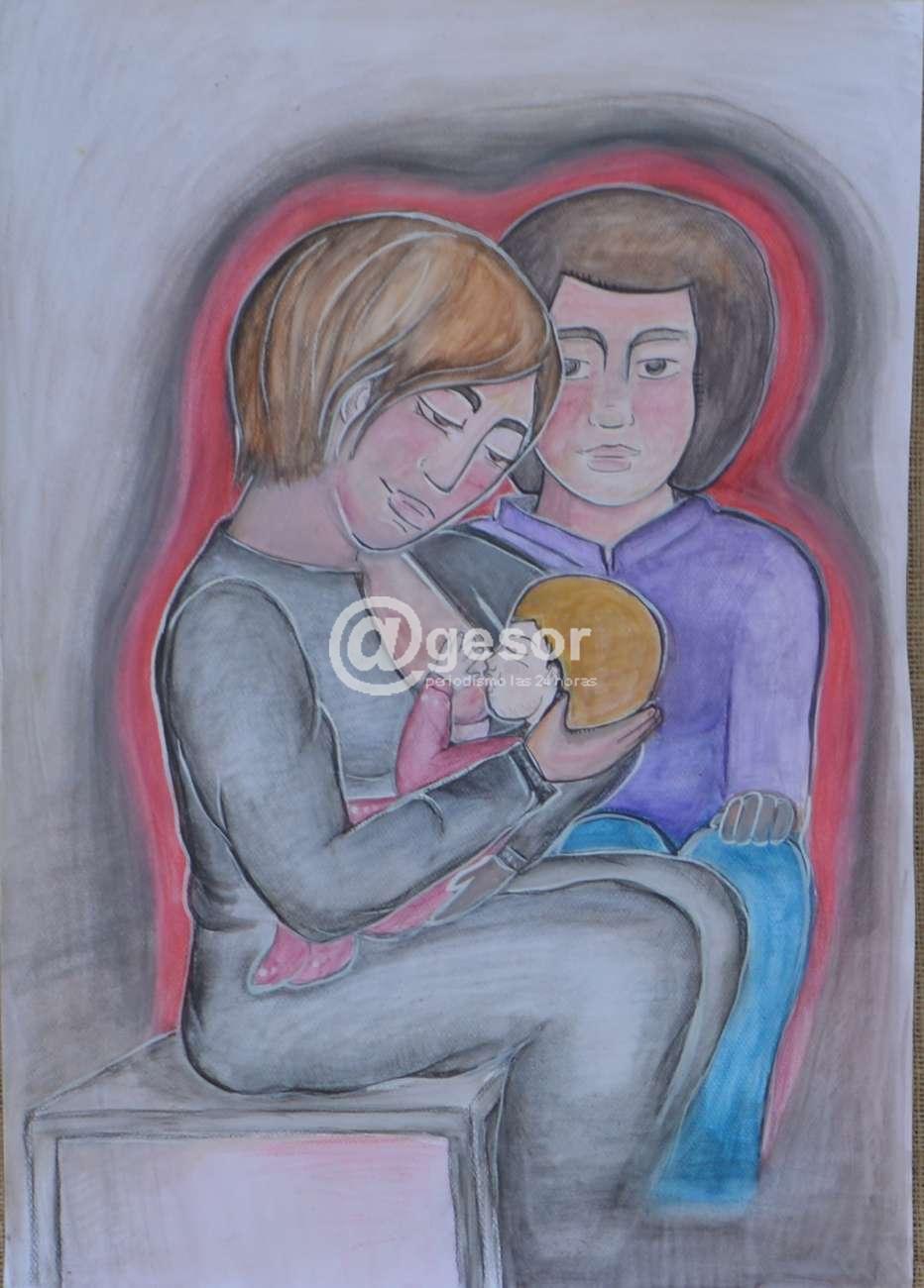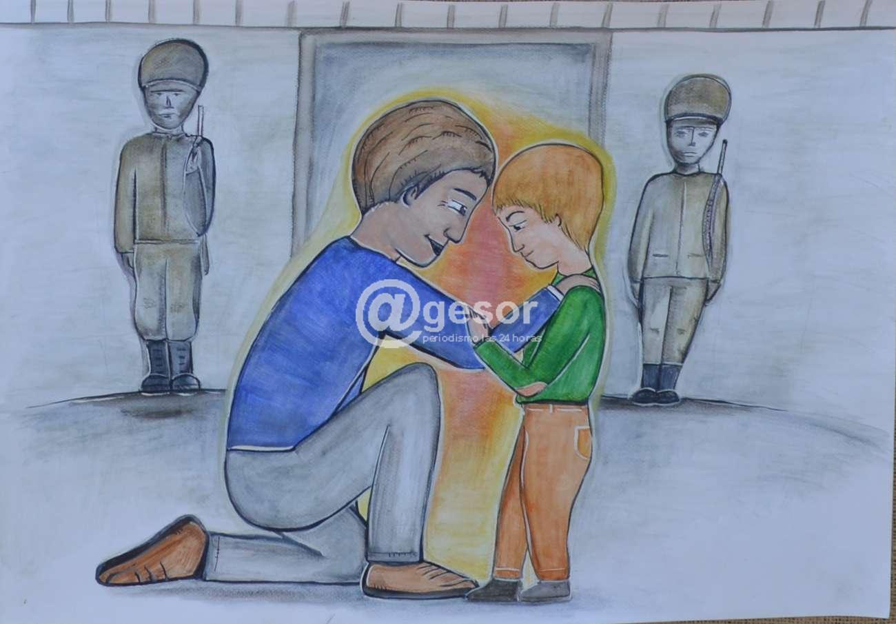 En otro, los dibujos de Natalia muestran figuras que se relacionan con la leyenda: "Cuando hablan de las visitas, en general, hablan de "paquetes". Las visitas llevaban consigo paquetes, llenos de cosas para sus familiares, pero sobre todo, llenos de amor y de esperanza. Los paquetes eran revisados a la entrada y su contenido era objeto de censura. La ventaja del amor y la esperanza es que no hay control, ni humano, ni electrónico, que sea capaz de detectarles".