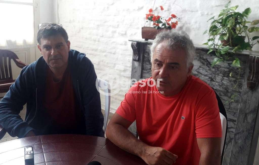 Los dirigentes del sindicato bancario (AEBU), Álvaro Legaspi, y Fernando Riera en el marco de una recorrida por distintas ciudades del país, llegaron a Mercedes este miércoles, tras recorrer Nuevo Berlín, San Javier y Fray Bentos y continuar mañana a Cardona, Trinidad y San José, finalmente.