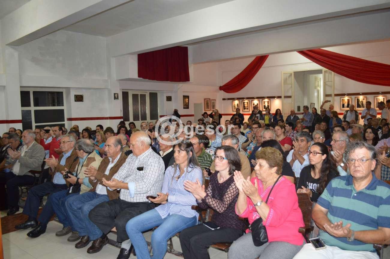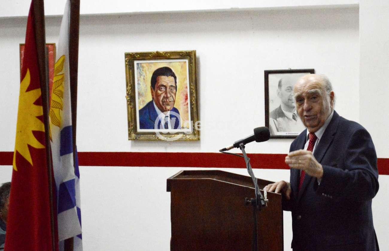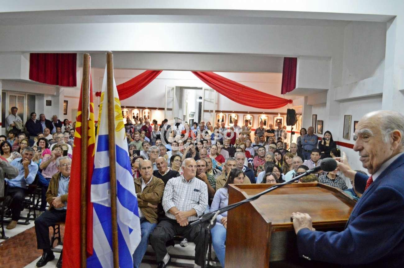 Con la sala de la "Libertad", que recuerda a un amigo suyo "Luis Bernado Pozzolo", colmada de público, el Dr. Julio María Sanguinetti regresó a la Casa del Partido Colorado en Mercedes en el marco de una campaña política luego de tres períodos en los que había dejado de participar activamente en ella.