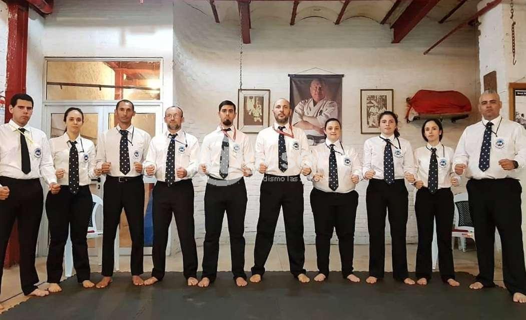 En una actividad que se realizó en el Dojo Estribo de Montevideo, tratándose de un seminario teórico y práctico de arbitraje, en la Modalidad Kumite Knock down.