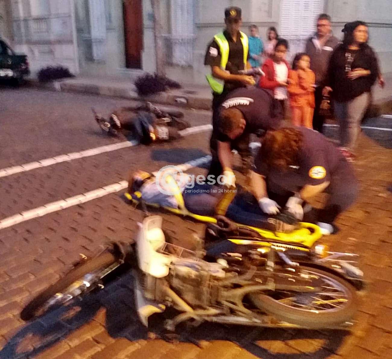 En la tardecita noche de este viernes se produjo colisión entre dos motos que tuvo como resultado que las conductoras de ambas motos resultaran con lesiones que no revistieron gravedad, pero que sí necesitaron atención en primera instancia.
