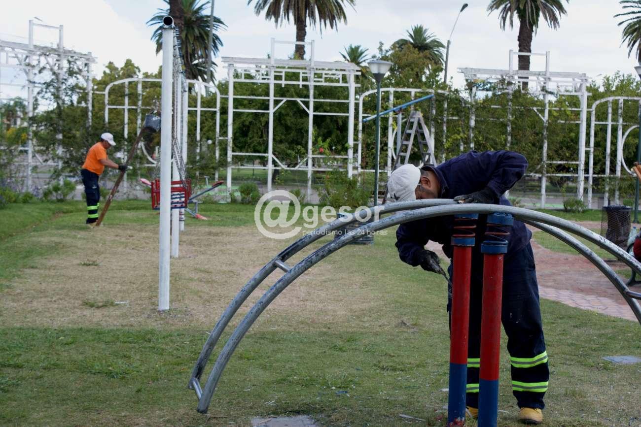 Se realiza reacondicionamiento y pintura en juegos infantiles, aparatos de gimnasia, cestos de residuos, bancos, mesas y otros elementos.