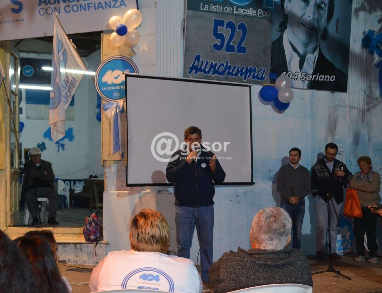 Previamente  hablaron  Orlando García  Hornos, el dirigente Alvaro Lasarte, y los ediles María Castro, Roque Maciel  y Guillermo Gutiérrez.  Siguió  Carlos Aunchayna  quien anunció que el próximo viernes  inaugurarán un  nuevo local  en el  barrio Cerro de Mercedes “y vamos  a laburar  mano  a mano,  con confianza  para  estar  cerca  de todos  y augurar un éxito  para el Partido  y para nuestro grupo.  Porque queremos  lo mejor para la gente, para todos  nosotros. Mejorar  la calidad de vida  es  el desafío.  Luis Lacalle Pou  es la esperanza  del cambio, de  que podemos  vivir  mejor, de que  nos merecemos un  mejor país; y nuestra  agrupación es garantía  en el departamento  de trabajo, de compromiso, de vocación  de  servicio y de estar cerca  de la gente”.