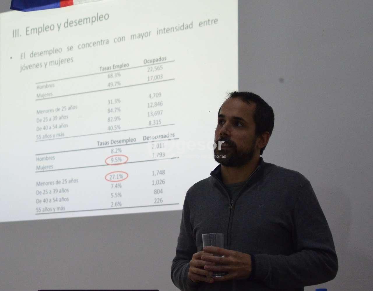 Este viernes  en la  sede  del  Plenario Intersindical de Soriano  se presentaron los datos del  Informe de Coyuntura.  La presentación estuvo a cargo del  Ec.  Hugo Bai, quien detalló  los diferentes  aspectos que componen el  mundo laboral del  departamento.   A  modo de ejemplo  la tasa de  desempleo en Soriano  se  ubica  en 8,2% para los hombres y 9,5% para las mujeres,  pero crece  considerablemente   en la población menor de 25 años,  llegando al 27,1%.  Algo  similar  a lo que ocurre  a  nivel naciona. “Ahí tenemos un problema muy grande  como país” comentó el Economista Bai.  De los  3.800  desocupados   en  el departamento,  casi  1.800  son menores de  25 años.