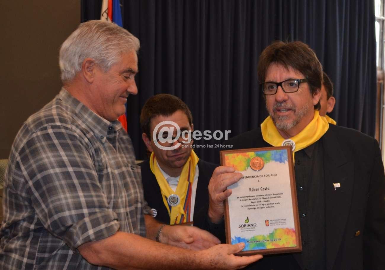 Al entregarle la “Medalla de Soriano” el Intendente Agustín Bascou destacó el trabajo que se realiza en esos centros y también el esfuerzo y sacrificio tanto de los jóvenes deportistas como de sus familias para participar de esta competencia internacional. En tanto Ruben Costa resaltó el apoyo recibido tanto de la Intendencia como de la Junta Departamental de Soriano que posibilitaron el viaje hacia Colombia. Resaltando también la confianza depositada por las familias de estos jóvenes no solo por este viaje puntual, sino por la tarea diaria que se realiza en los centros de equinoterapia.
