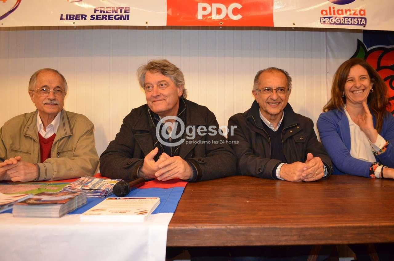 Flanqueado por el presidente de la Mesa Departamental del F A, Roque Arregui, de la vicepresidenta Elsa Barolín y el líder del sector Frente Soriano, Julio Guastavino, junto a simpatizantes, en sede del Frente Soriano,  abordó con los medios de prensa diversos temas de actualidad.