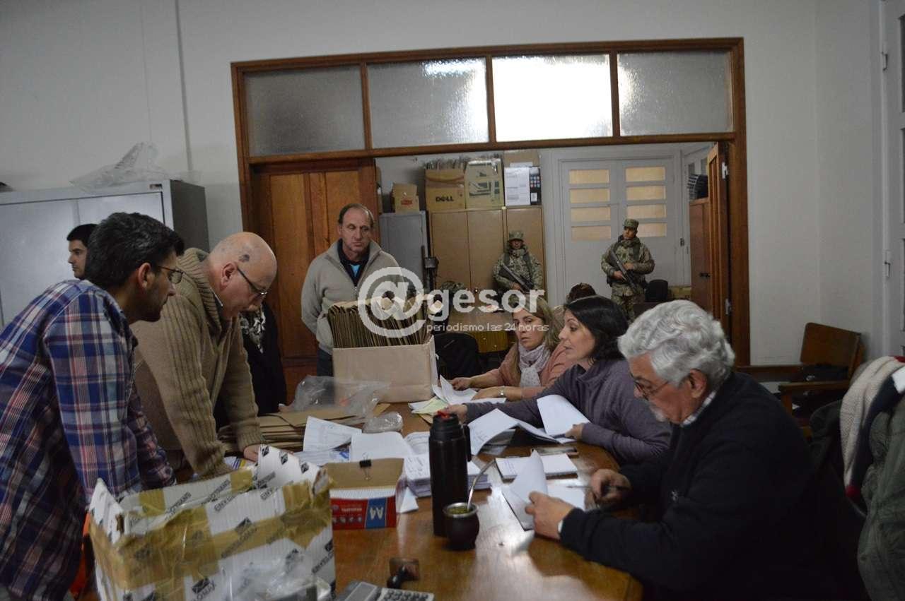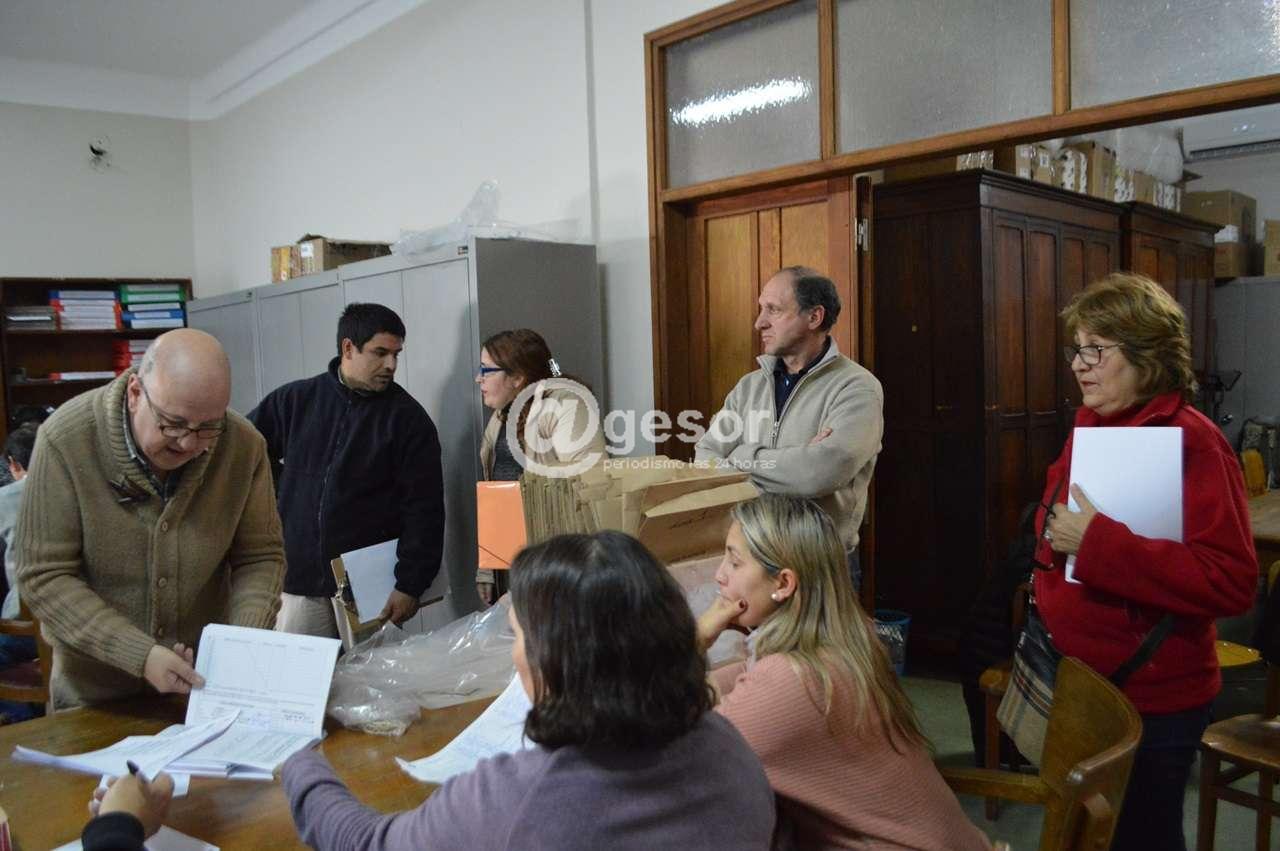 Con dos mesas escrutadoras de votos, en las que se repasa primero todo lo actuado por la Mesa que trabajo el mismo domingo en el circuito original, cotejando cada una de las actas en papel con el material que estaba dentro de la urna y controlando la cantidad de votos observados y que los sufragios anulados estén debidamente realizados, se viene trabajando, a la par que otros funcionarios y funcionarias realizan diferentes tareas de control por separado como cotejar la cantidad de observados en forma individual y el estudio de éstos, el detalle que fuera debidamente subido a la red de Informática, entre otras tareas de revisión.