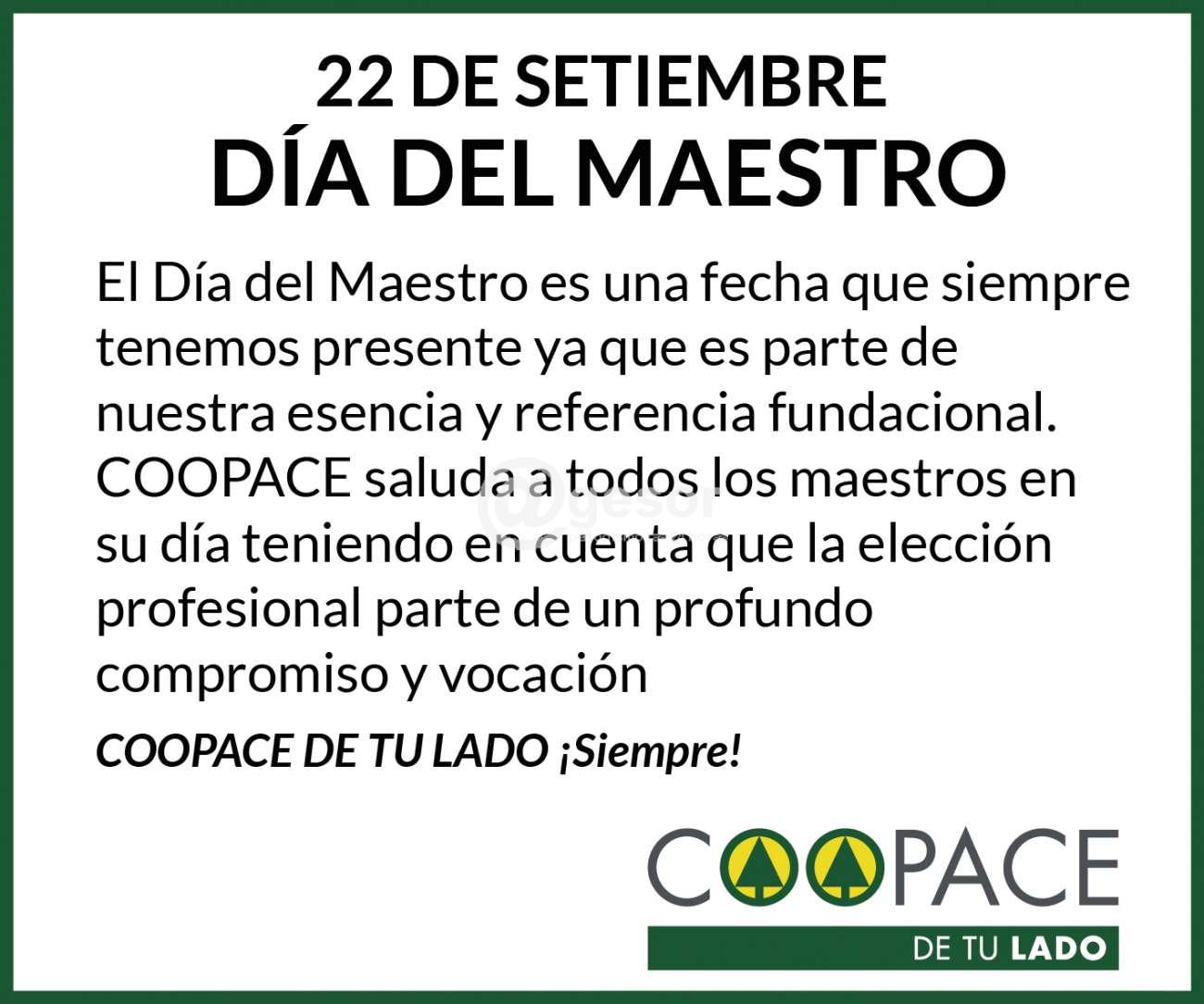 COOPACE saluda a todos los maestros en su día teniendo en cuenta que la elección profesional parte de un profundo compromiso y vocación