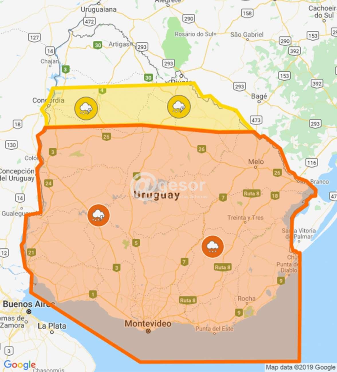 El pronóstico climático para las próximas horas emitido por Inumet es el siguiente: