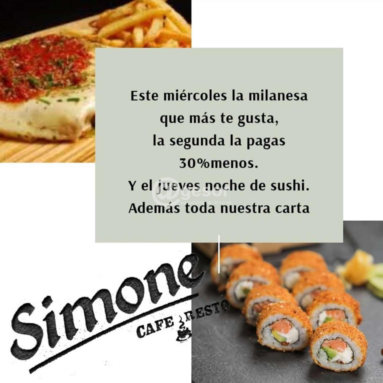Este miércoles en SIMONE Café & Resto la milanesa que más te gusta, la segunda la pagas 30% menos y el jueves noche de Sushi.