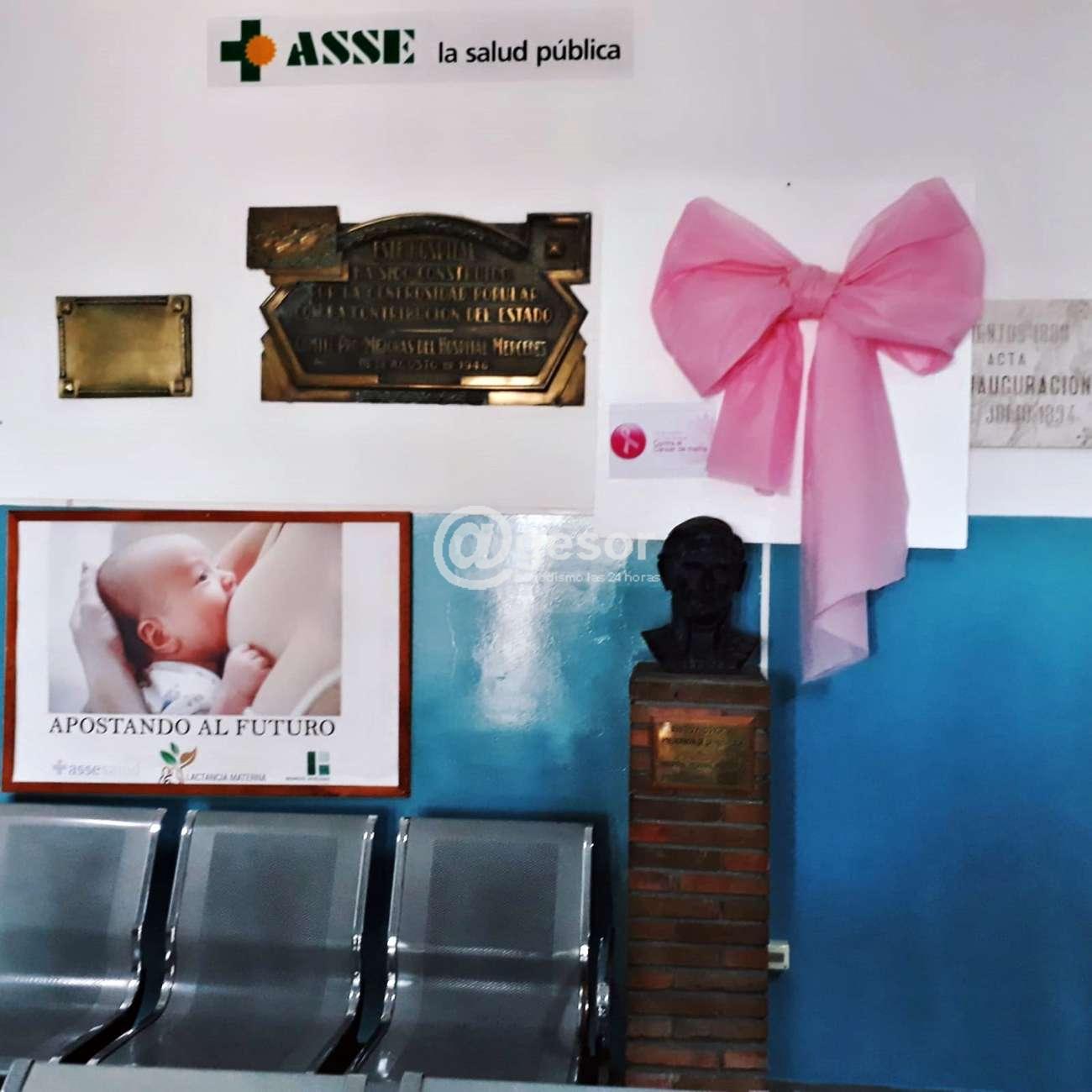 En el marco de la conemmeoración del Día Mundial de lucha contra el cáncer de mamá, el Hospital de Mercedes "Zoilo A. Chelle" de ASSE, luce en su interior distintivos y material informativo todo color rosa, relacionado precisamente con la lucha contra este flagelo.