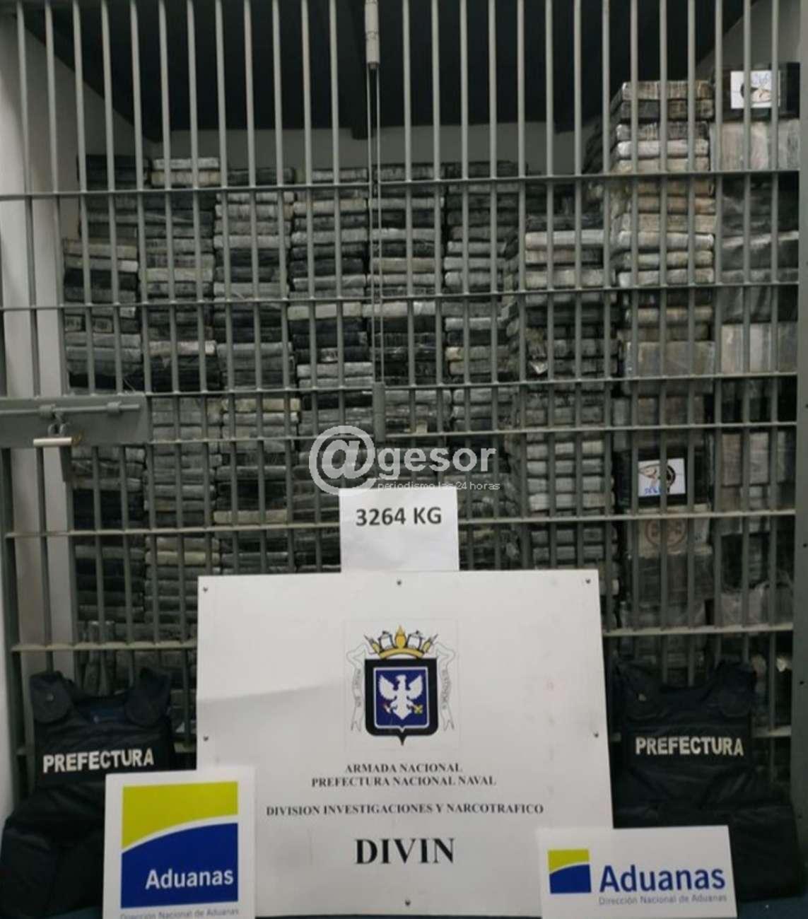 En un operativo en conjunto entre la División de Investigaciones y Narcotráfico de la Prefectura Nacional Naval (DIVIN) y la Dirección Nacional de Aduanas se incautó esta importante cantidad de droga dentro un contenedor en el Puerto de Montevideo.