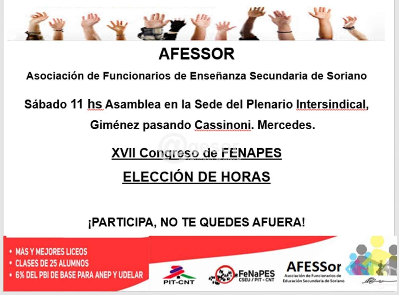 Sábado 11 hs Asamblea en la Sede del Plenario Intersindical, Giménez pasando Cassinoni. Mercedes.