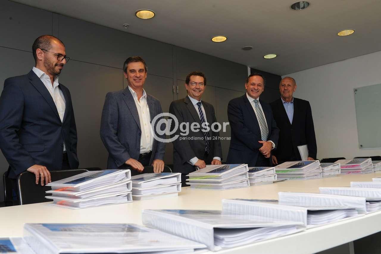 El director de la Oficina de Planeamiento y Presupuesto, Álvaro García, el secretario de Presidencia, Miguel Ángel Toma, y el prosecretario, Juan Andrés Roballo, entregaron en el piso 5 de la Torre Ejecutiva al secretario de la Presidencia designado, Álvaro Delgado, y al prosecretario designado, Rodrigo Ferrés, los materiales que detallan la información de cada secretaría de Estado y del Gobierno en general.