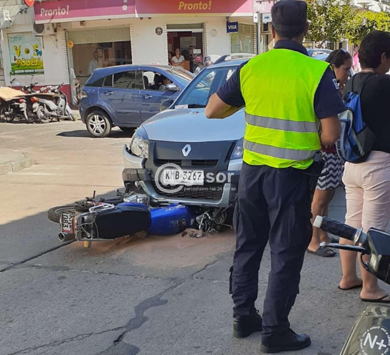 Próximo a las 9.30 horas de este jueves se produjo siniestro de tránsito en el Centro de Mercedes, en la intersección de calles Colón y Rodó.