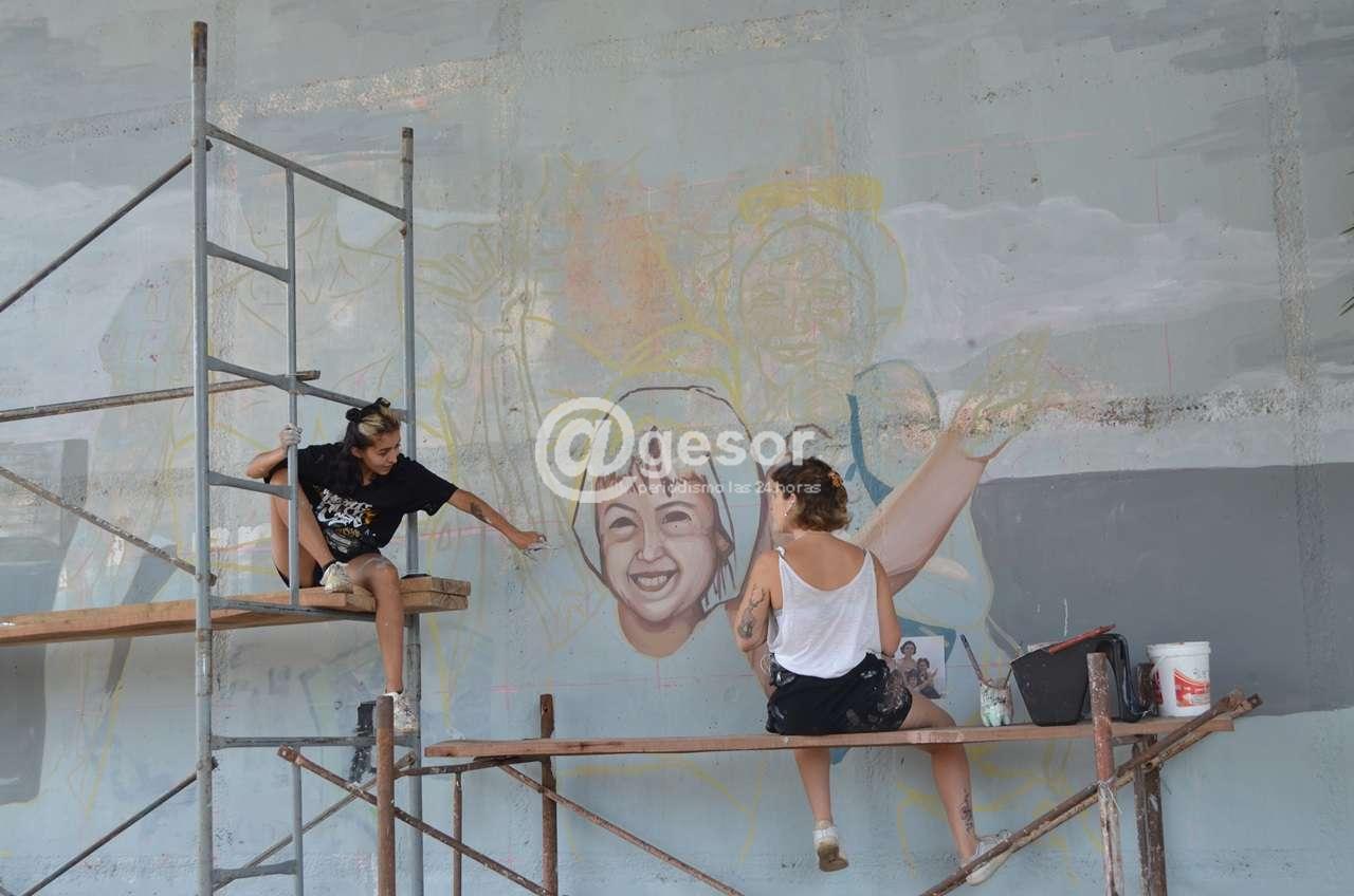 Debajo del puente “Líber Seregni” dos jóvenes Lina Castellanos (Colombia) y Naty Andreoli (Argentina) trepadas a un andamio la emprenden con pintura en uno de los altos pilares. Desde abajo se las ve más pequeñas de lo que realmente son. Al dialogar con ellas reconocieron “el espacio público” es duro “para las mujeres seas o no seas muralista” comentó Lina. “ Estamos expuestas al comentario de las personas, te quieren ayudar, ofrecer algo porque creen que no sos capaz”. Pero “nosotras llevamos años haciendo esto y no tenemos ningún problema ni con el esfuerzo físico, ni con manejar grúas. Pero te enfrentas a comentarios muchas veces machistas”.