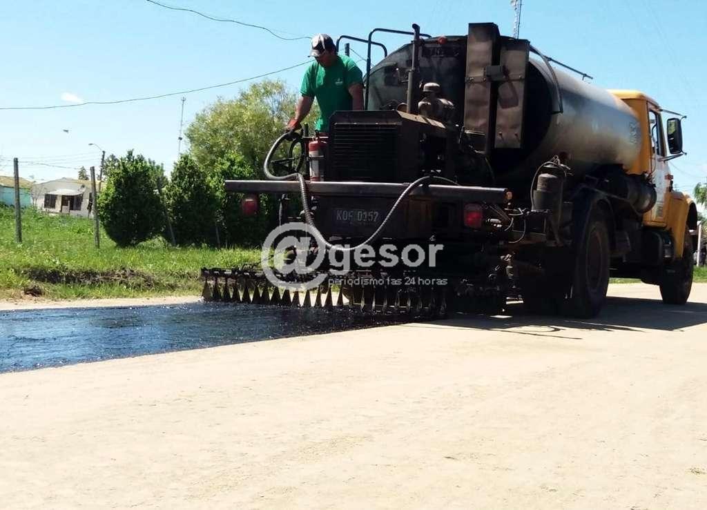 Se hizo reacondicionamiento de base granular y se aplica asfalto con gravilla en Av. Aparicio Saravia desde 28 de febrero hasta 19 de abril.