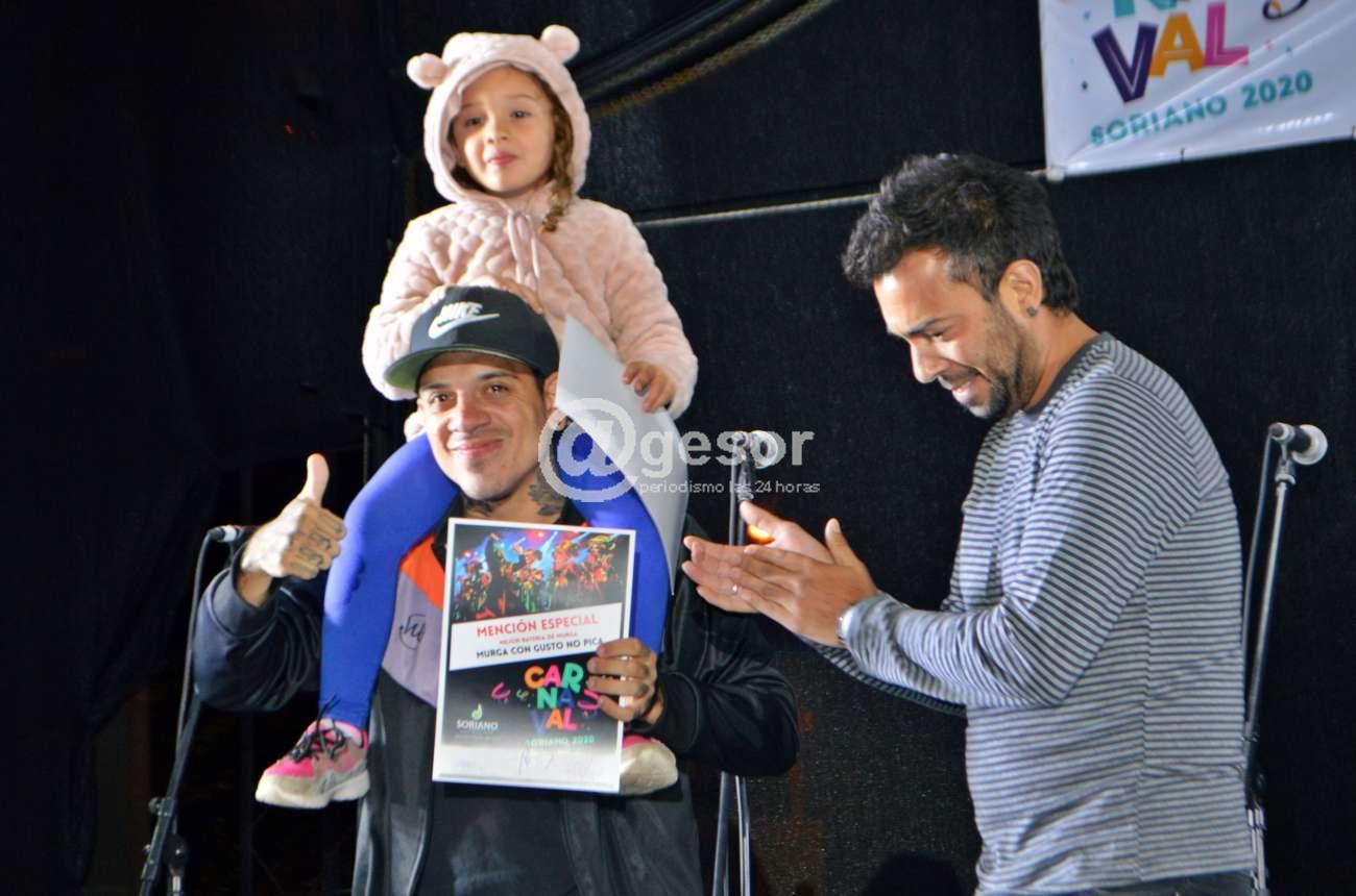 Actuaron humoristas Sin Permiso y luego murga Sale con Fritas, y seguidamente se procedió a la entrega de las menciones especiales y los premios, estando presentes la Directora de Cultura Lourdes Cerchi y la integrante de la Comisión de Carnaval Edila Nilda Costa, habiéndose invitado también a entregar una de las menciones a José Luis Gómez que se encontraba presente, también lo hicieron las hijas de Dardo Gómez, el cantante Norberto Espíndola conocido artísticamente como Beto Serrano, la reina y princesas del carnaval, además de integrantes del jurado.