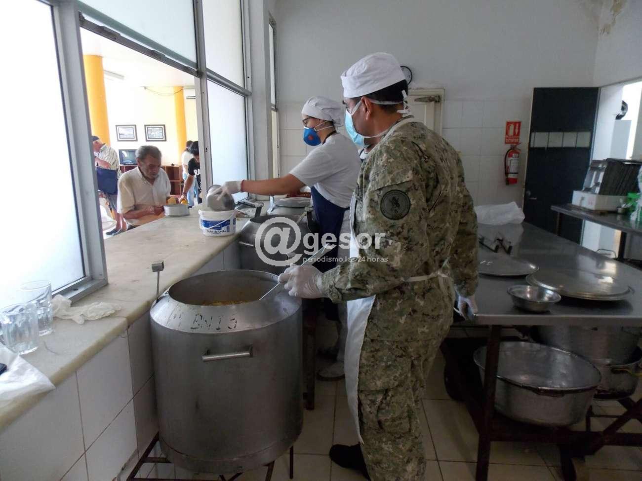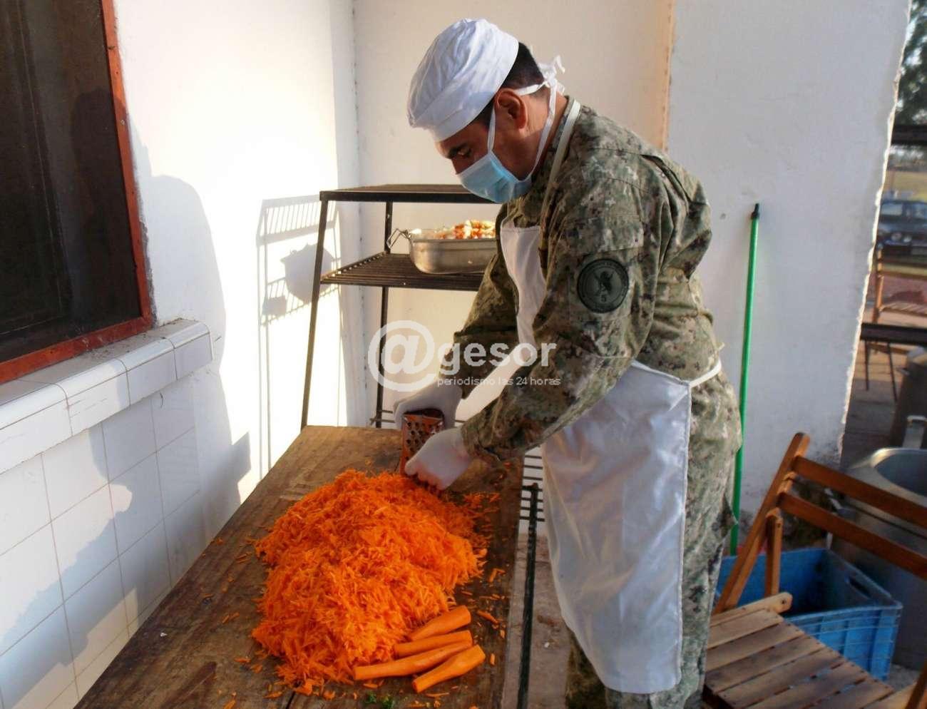 Allí se brinda la alimentación, al igual que en Dolores -donde los habilitados son 260 habiéndose incrementado en más de 100 personas en esta emergencia- todos los días a las personas inscriptas, las que a raíz de las medidas de prevención en lugar de almorzar en el lugar como es habitual, durante esta emergencia se les entrega una vianda. El personal del Batallón "Asencio" este domingo colaboró en la confección de la comida y entrega y también ayuda en la separación de la gente mientras aguarda la entrega de las viandas, ordenando al público, desarrollándose todo en completa armonía.