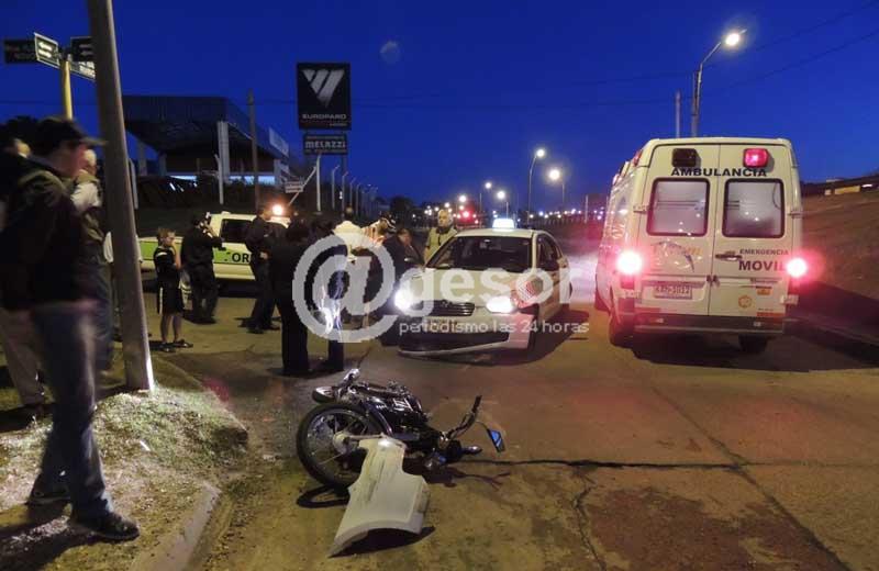 Sobre las 18:40 horas de este lunes un taxi y una moto chocaron en la zona de calles Isabel Rubio y Florez Novo (continuación Sánchez), resultando con lesiones de consideración un octogenario que se desplazaba en el vehículo menor. El auto Hiundai, de la empresa de taxímetros 1313, matrícula KTX-1067, conducido por César Razquin, se dirigía por Isabel Rubio al norte, mientras que el motociclo, Winner 4tc, matrícula KMI 814, guiada por Juan Ortiz de 81 años, transitaba por la misma arteria pero en sentido contrario, con la intención de tomar calle Florez Novo al este.