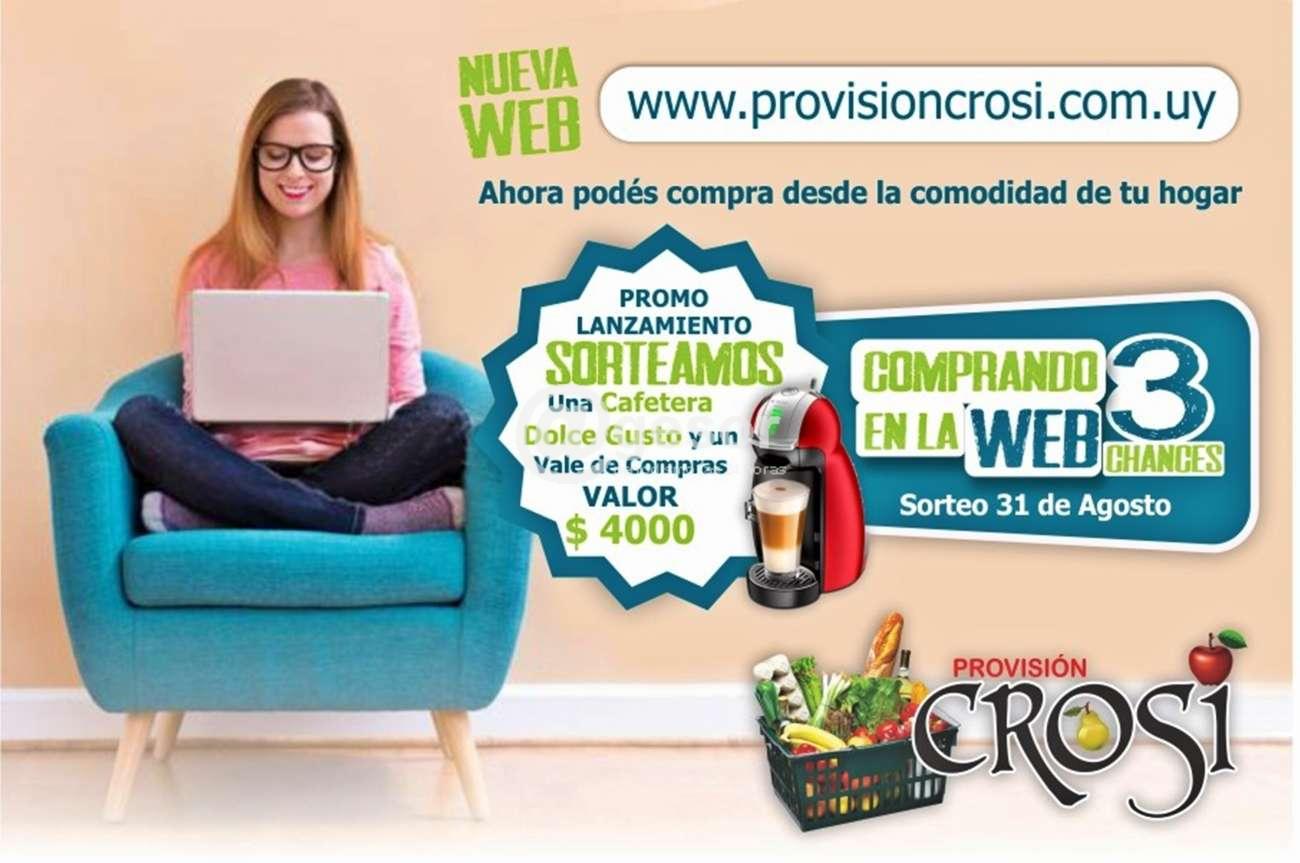 En Provisión CROSI ahora podés comprar desde la comodidad de tu hogar. Cuenta con nueva Web www.provisioncrosi.com.uy donde ofrece promo lanzamiento sorteando una cafetera Dolce Gusto y un vale de compras valor $ 4.000. Comprando en la web tenés tres chances. El sorteo se realizará el 31 de agosto.