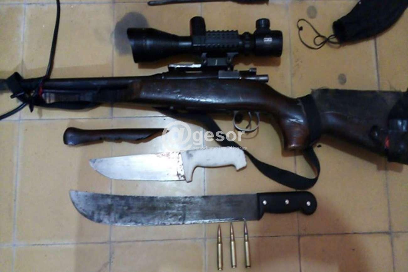 Esto determinó la inmediata detención y la incautación de la moto Yumbo Shark 125cc, un rifle marca ilegible, calibre 308, con mira y tres municiones 6,72x51, un machete, una cuchilla y una chaira de 25 cm de hoja.