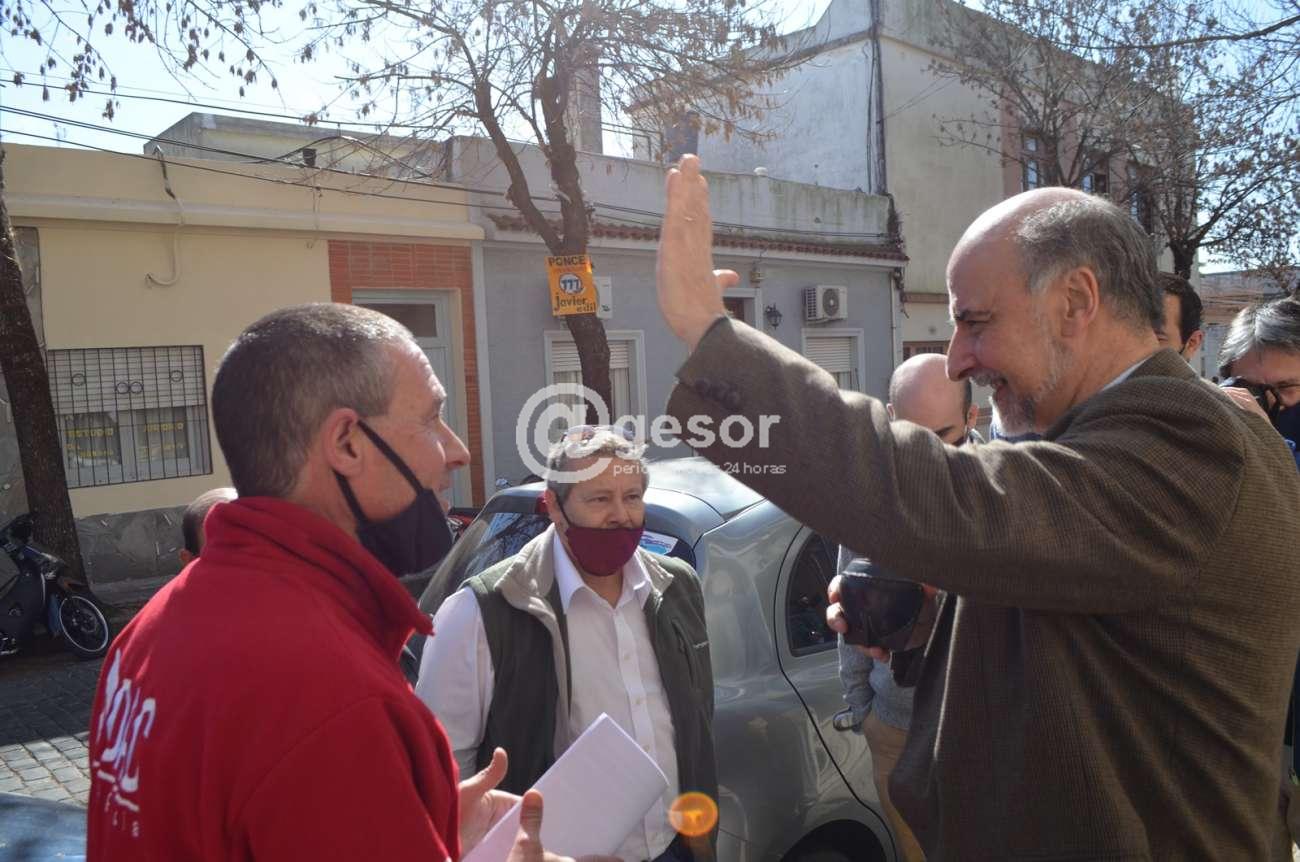 En el encuentro informal, en la puerta de la Oficina de Trabajo de Mercedes los trabajadores del transporte interdepartamental de pasajeros le plantearon los principales reclamos de la UNOTT.