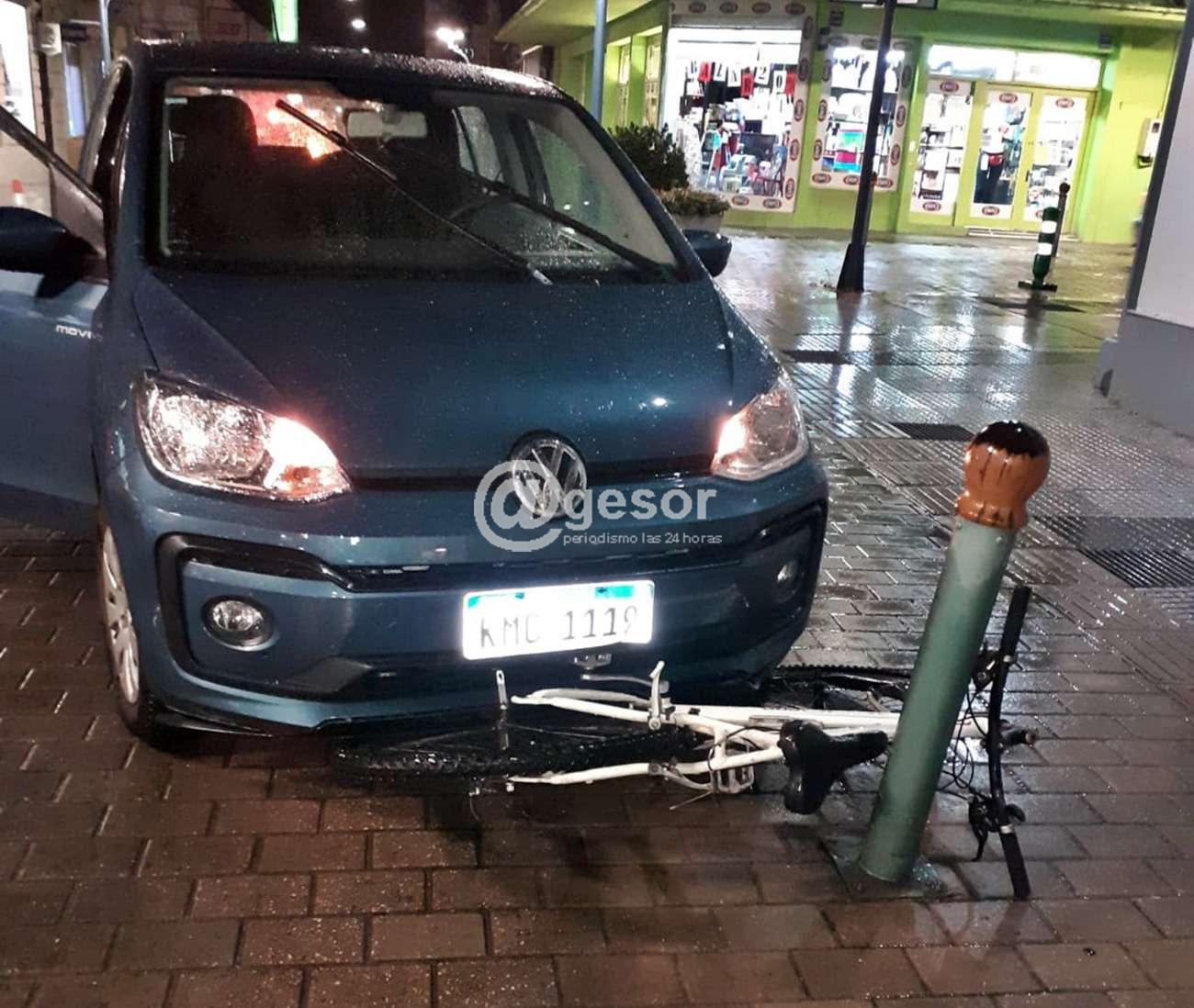 Al llegar a la intersección el vehículo mayor embistió a la bicicleta resultando el ciclista con lesiones leves, a pesar de como quedaron los vehículos, siendo arrastrado la bicicleta por el auto y terminando aquella contra con un bolardo.