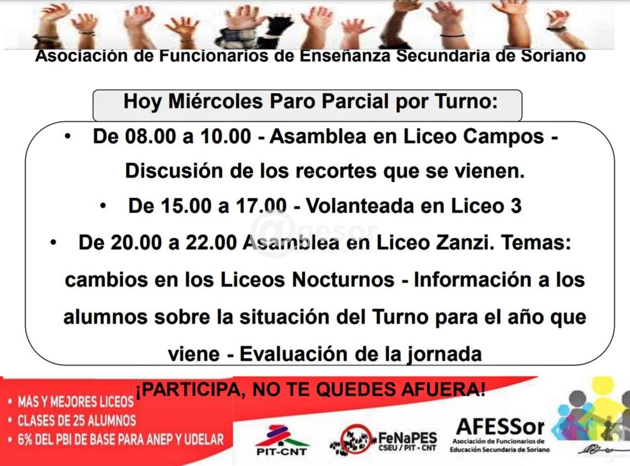 Hoy miércoles paro parcial por turno: