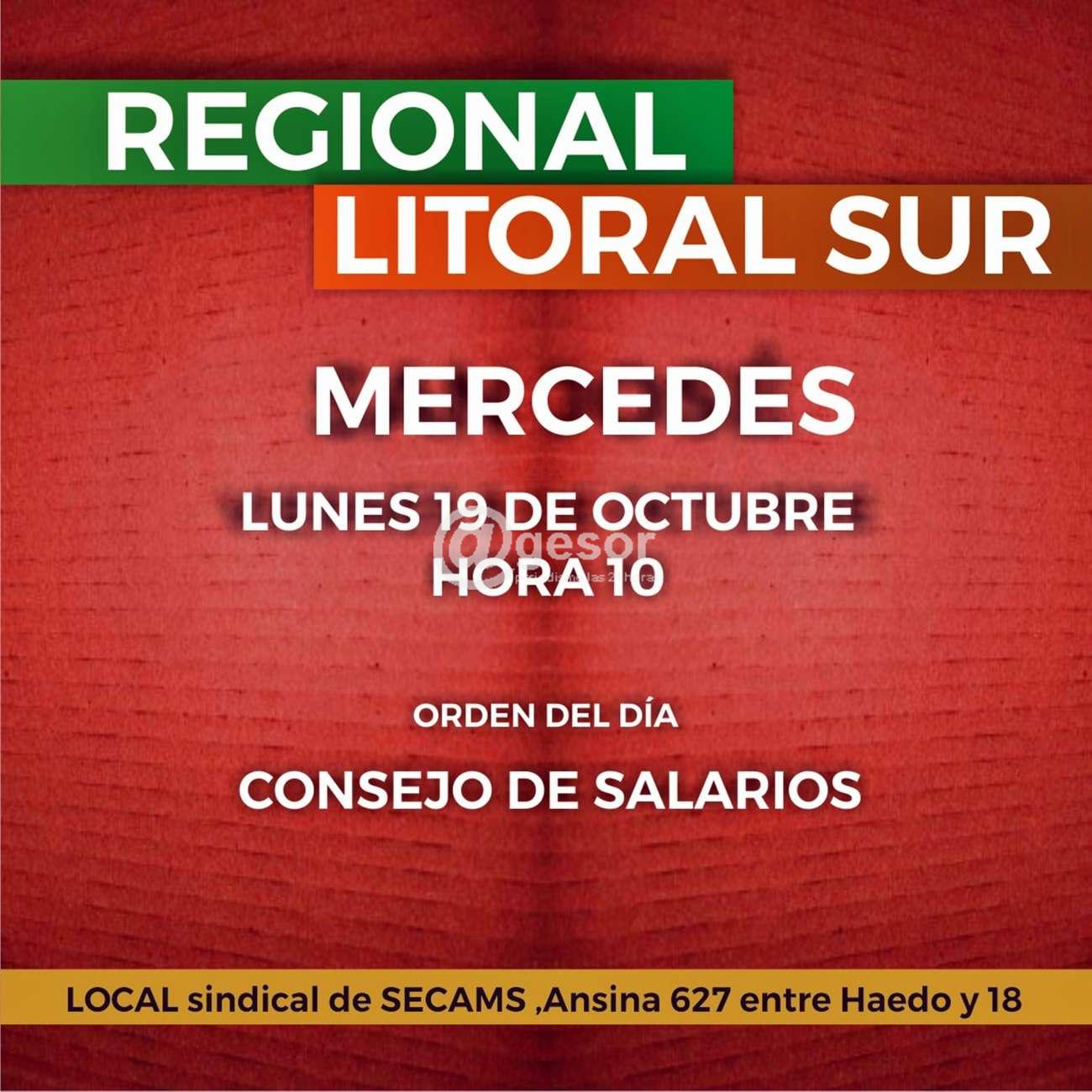 Este lunes 19 a las 10.00 horas, en sede de SECAMS (Sindicato de Empleados de CAMS) ubicada en Ansina 627 entre Haedo y 18 de Julio, se iniciará el Regional Litoral Sur de la FUS (Federación Uruguaya de la Salud), en encuentro que tendrá como principal tema del orden del día "Consejos de Salarios".