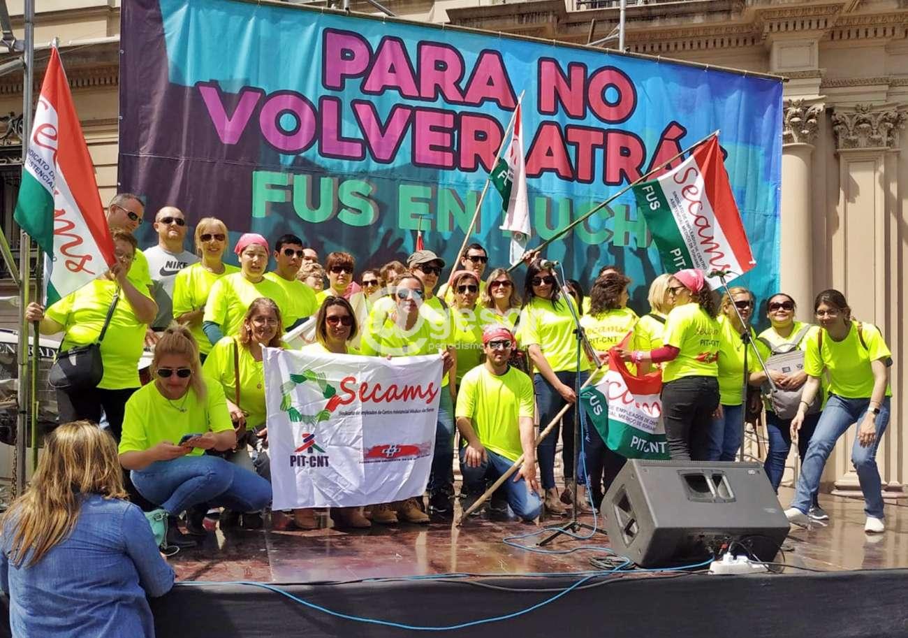 Precisamente para participar de esta actividad viajó desde Soriano delegación de trabajadores nucleados en SECAMS, 13 funcionarios de Dolores, 45 de Mercedes, mientras que de Cardona informaron que no pudieron viajar. Estarán tomando parte de la movilización en la capital del país, en la fotografía se muestra parte de esa delegación con la indumentaria que distingue al grupo sorianense.