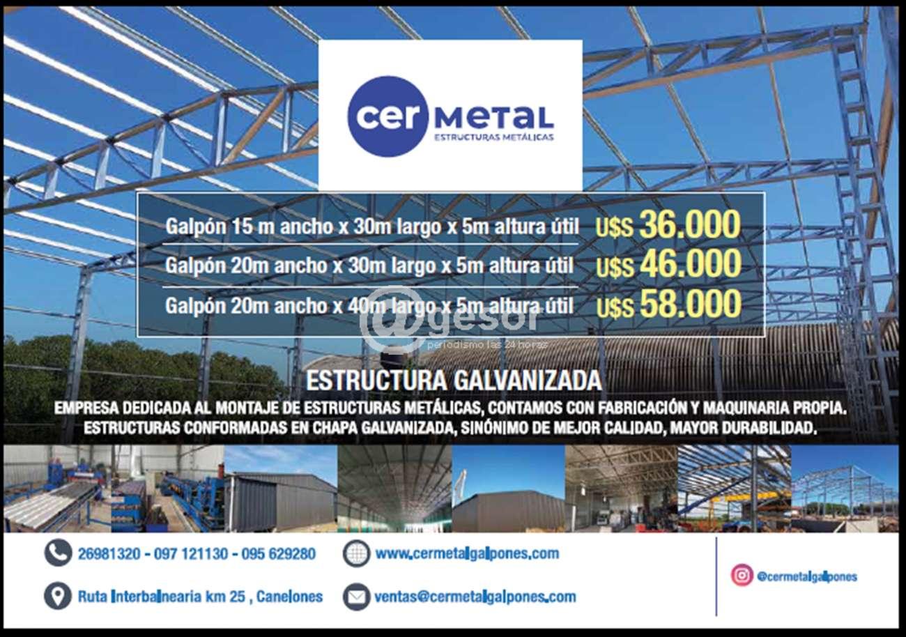 Galpòn 15 metros de ancho x 30 metros de largo x 5 metros de altura – U$S 36.000
